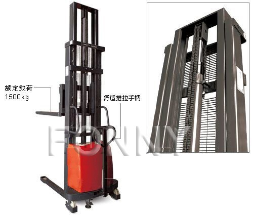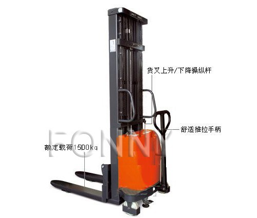 • 具有裝卸和短距離運輸貨物功能的兩用半電動堆高車;