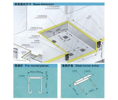 •登車橋主體橋面采用6mm花紋板、主支架采用12#工字鋼、唇板采用14mm鋼板加3mm花紋板