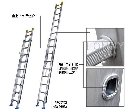 • 借助升降鉤、滑輪組及拉繩使上節梯升降自如