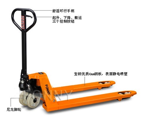 產(chǎn)品適用性:手動(dòng)托盤車 是一切短距離搬運(yùn)傳送作業(yè)的理想之選,該車擁有大載荷,既可搬運(yùn)十分沉重貨物,也不畏懼非常規(guī)尺寸貨物,適用于搬運(yùn)作業(yè)要求。