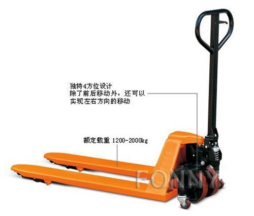 • 配有一組附加輪使搬運車除了傳統(tǒng)的前后方向移動外還可側(cè)面移動